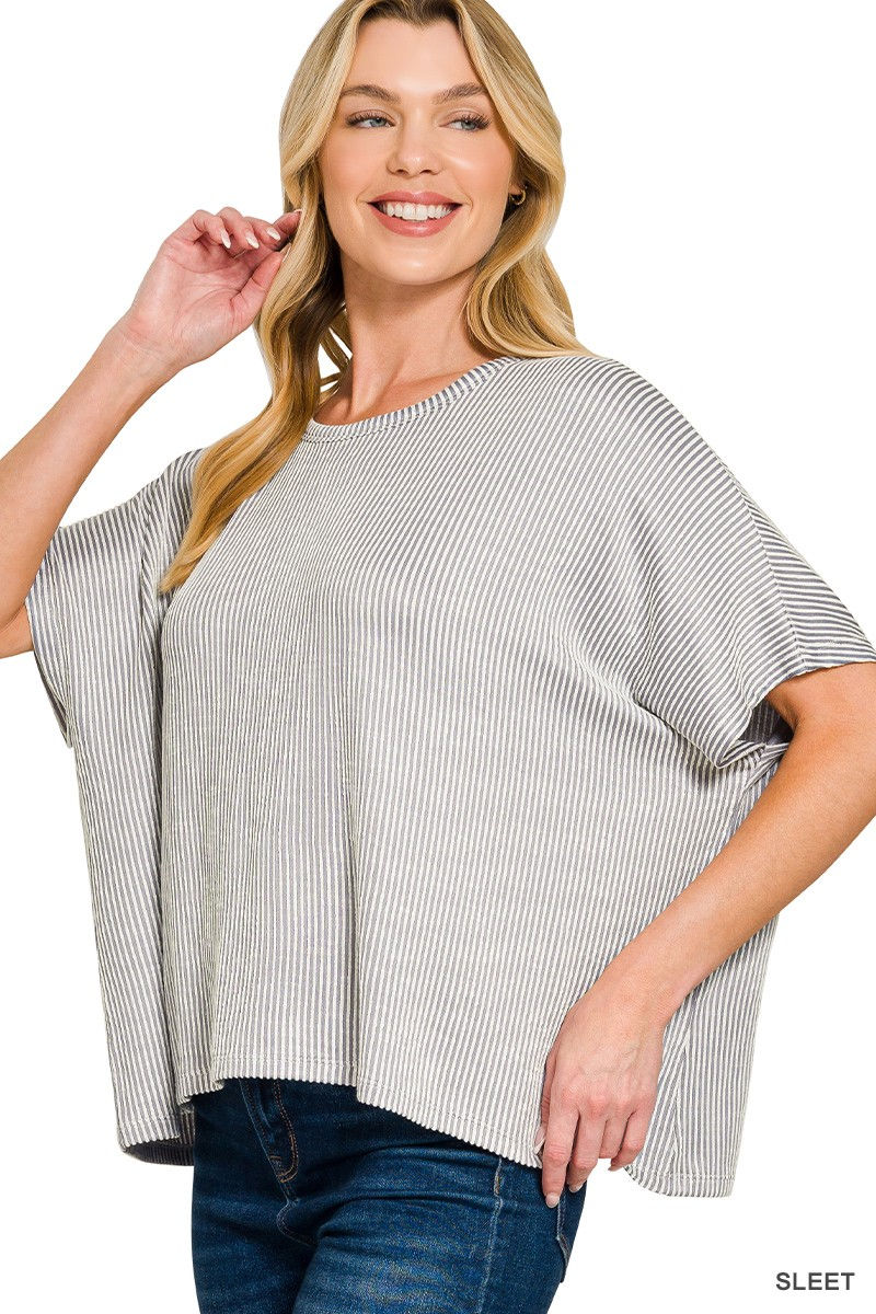 Ribbed Striped Oversized Short Sleeve Top