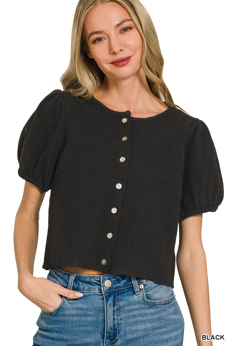 Black Puff Sleeve Cardigan Sweater